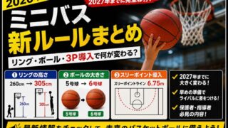 2026年最新版のミニバス新ルールをわかりやすく解説!リングの高さ・ボールサイズ・3ポイント導入など、2027年までの変更点と準備すべきポイントを保護者・指導者向けにまとめました。