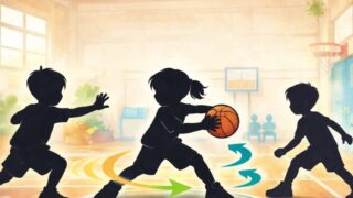小学生でもわかるバスケのピボット解説。軸足の意味やトラベリングにならない動き方、楽しくできる練習方法をやさしく紹介します。